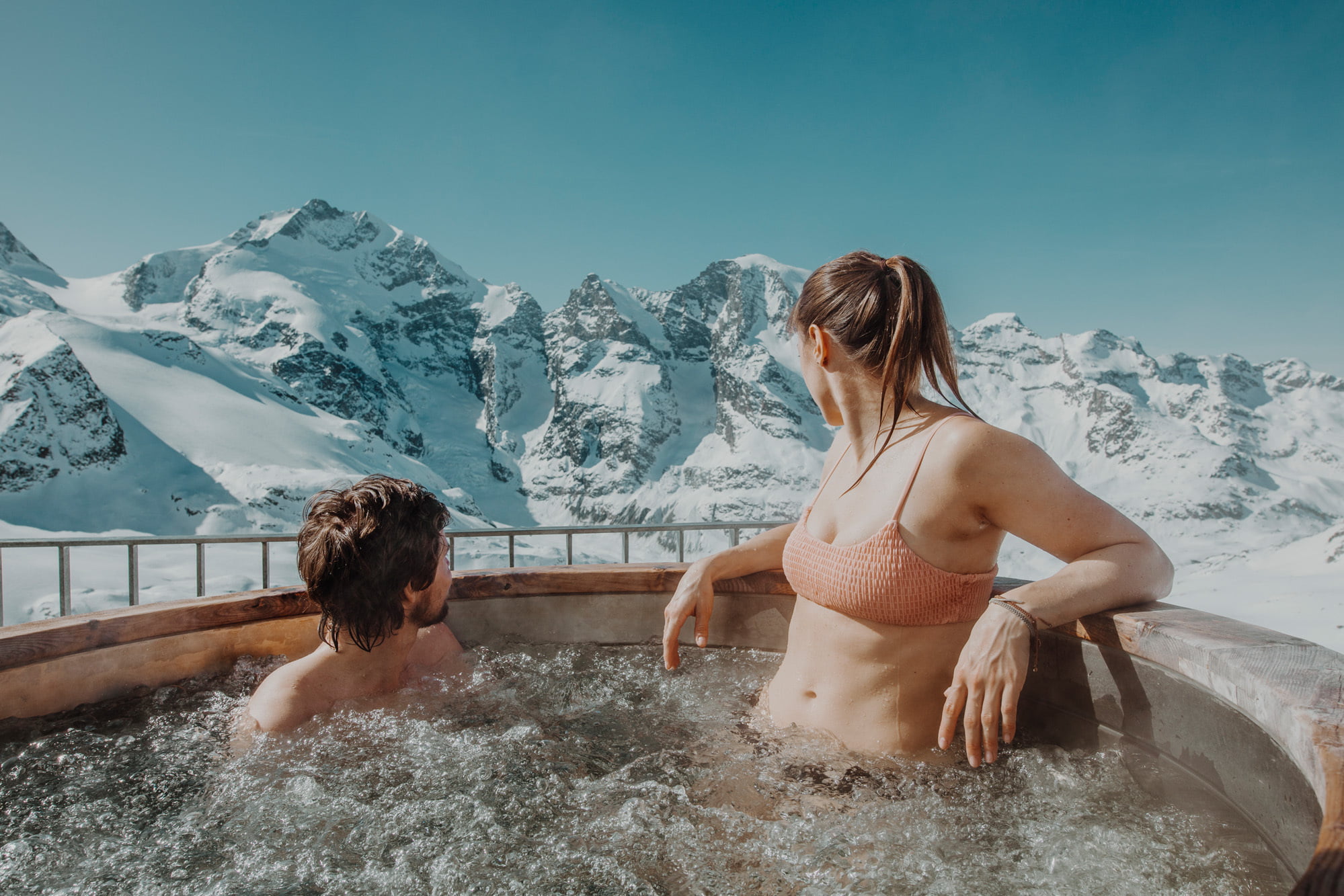 세계에서 가장 높은 자쿠지는 어떤가요? 스위스 디아볼레짜 산 꼭대기에 위치한 호텔 베르그하우스 디아볼레짜의 이야기입니다. 해발고도 3,000미터에 위치한 야외 자쿠지에서는 설산을 배경으로 목욕을 즐길 수 있습니다. 주변을 바라보는 것만으로 가와바타 야스나리의 <설국>에 들어온 듯한 체험을 할 수 있습니다.